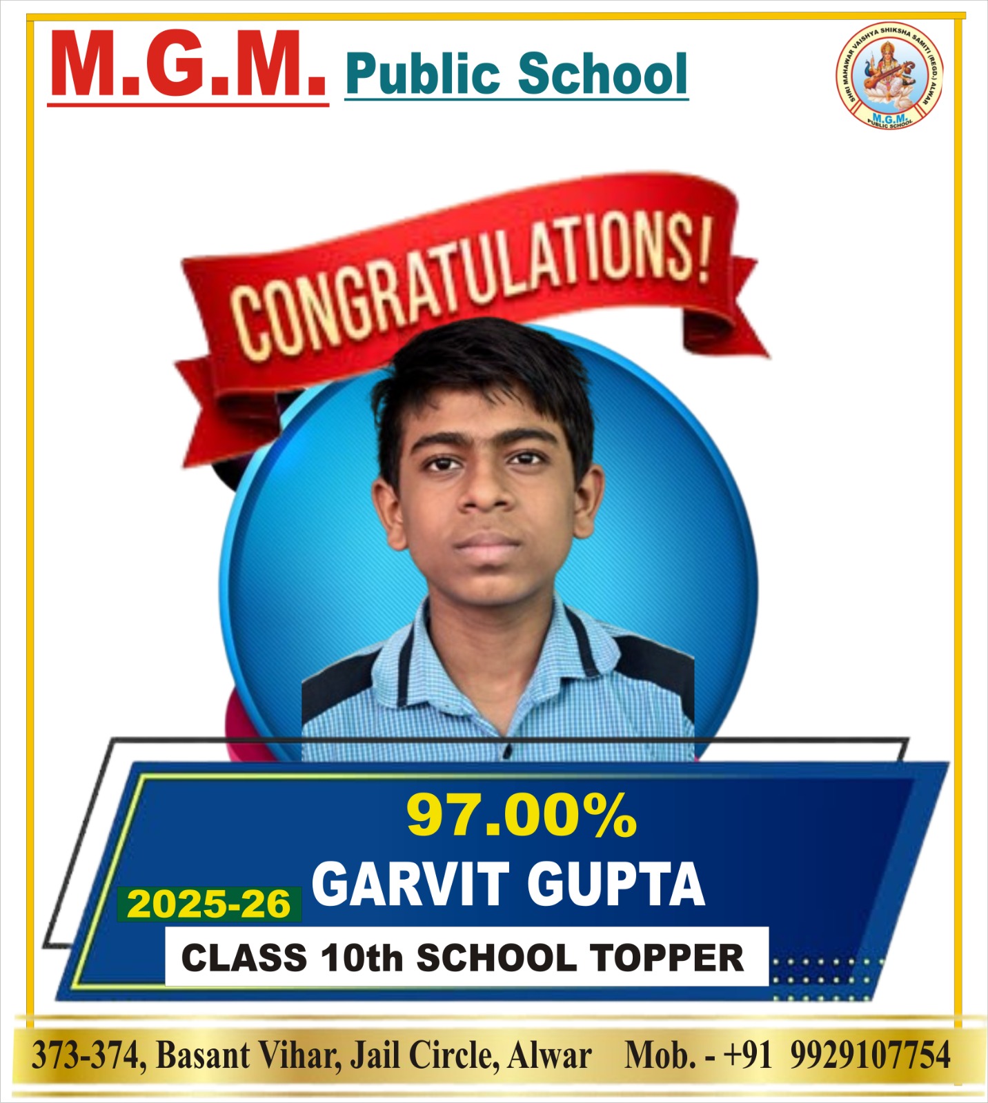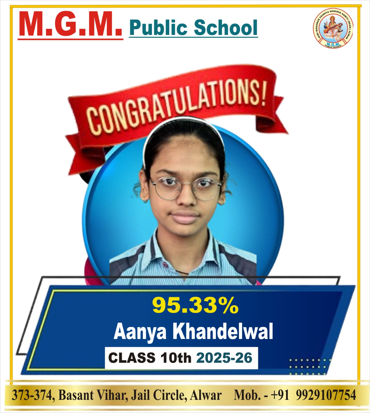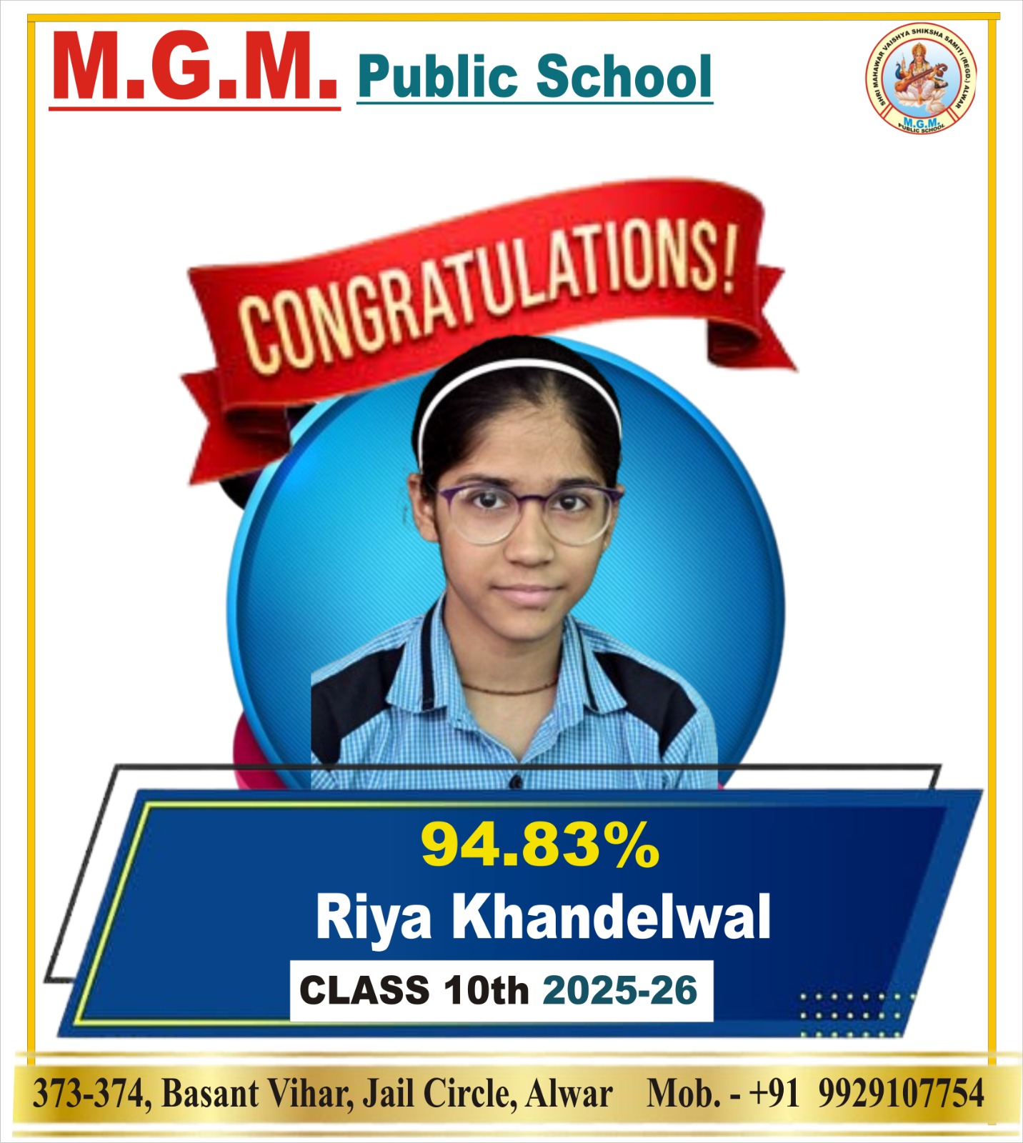 Managed by: Shri Mahawar Vaishya Shiksha Samiti (Regd.) Alwar